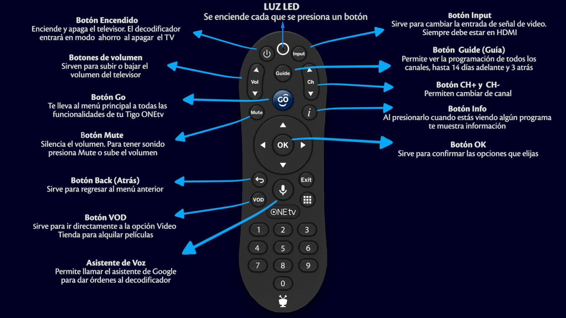 El control remoto de tu Tigo ONEtv tiene características novedosas que lo hacen muy especial: