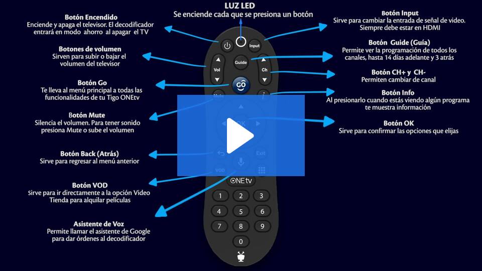 Conoce más sobre tu control remoto ONEtv en el siguiente vídeo